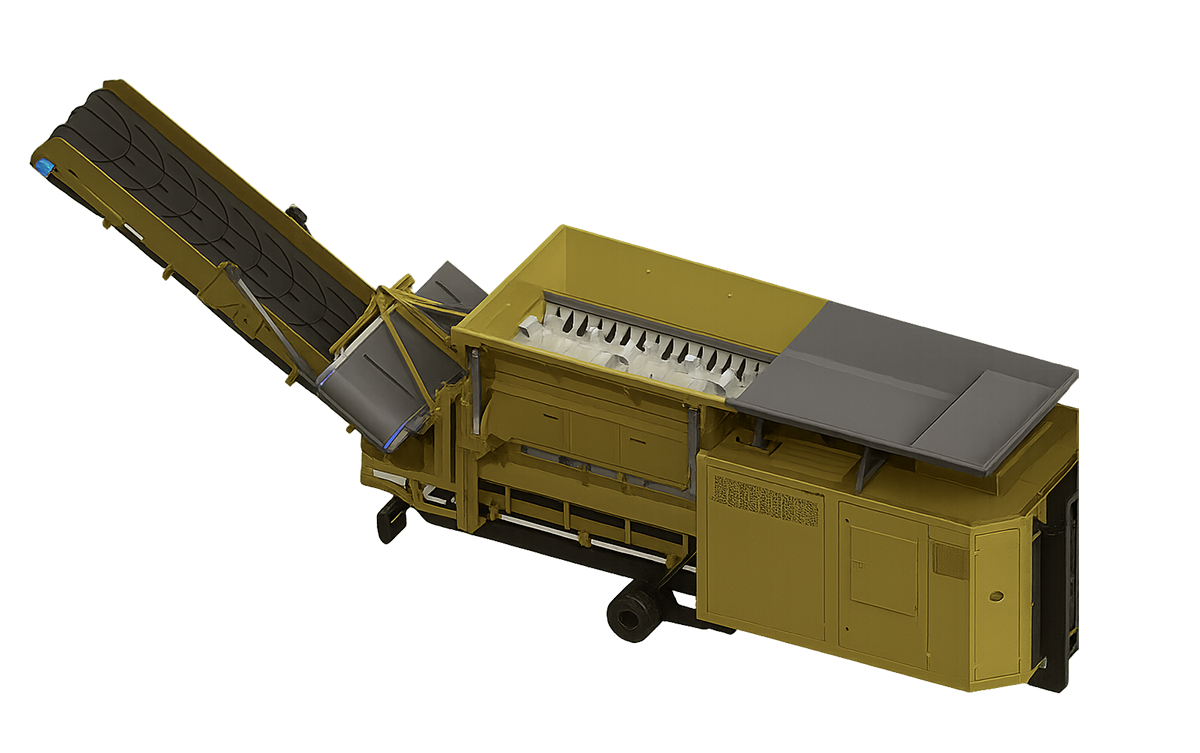 Onze HL1 is een langzaam lopende shredder met 1 brekeras die met name wordt ingezet voor restafval, bouw en sloop, hout en groenafval.